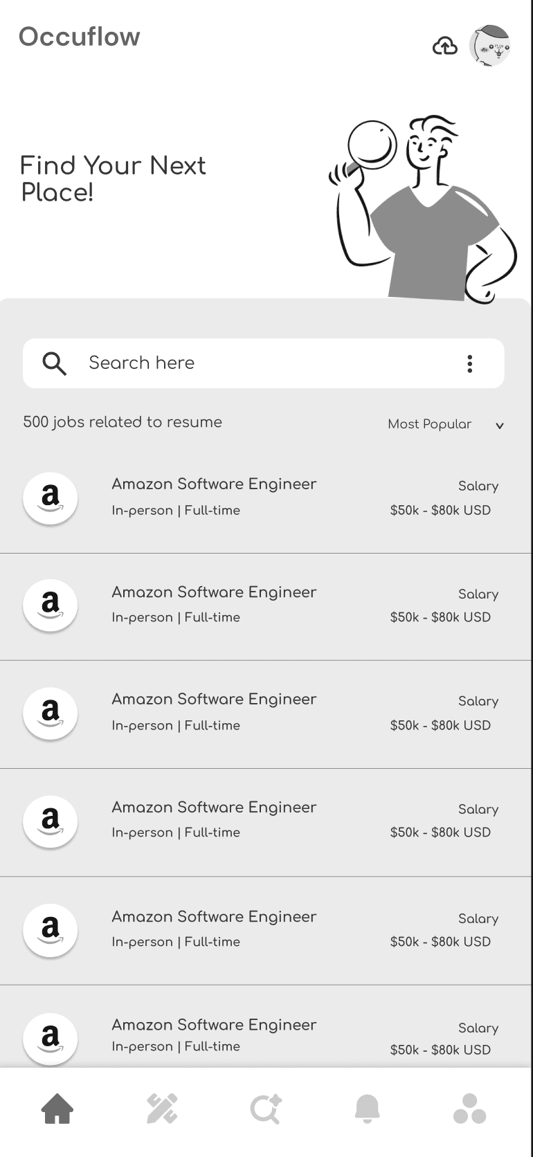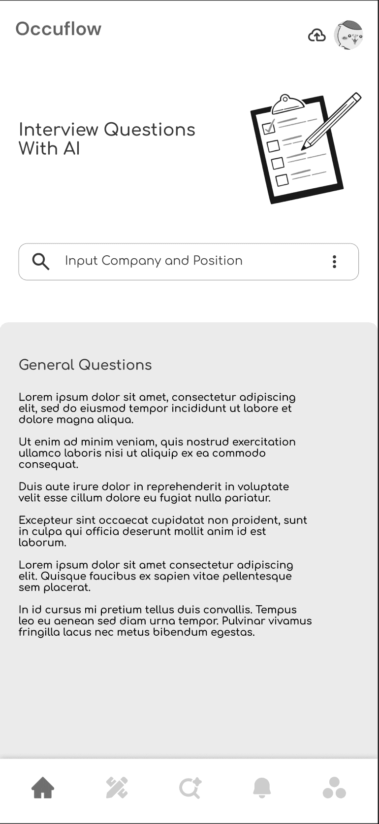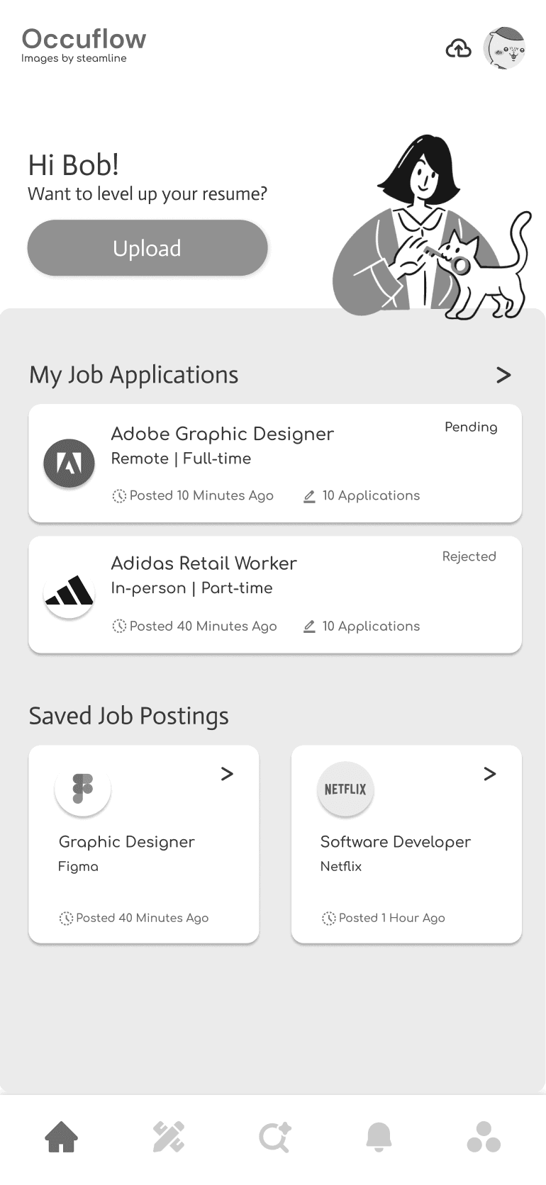 Occuflow is an app that allows users to stand out in their job application by customizing their resume and preparing with company specific questions with the use of AI. The app also helps with notifications for said applications, which will then be connected to the applications to alert the user.