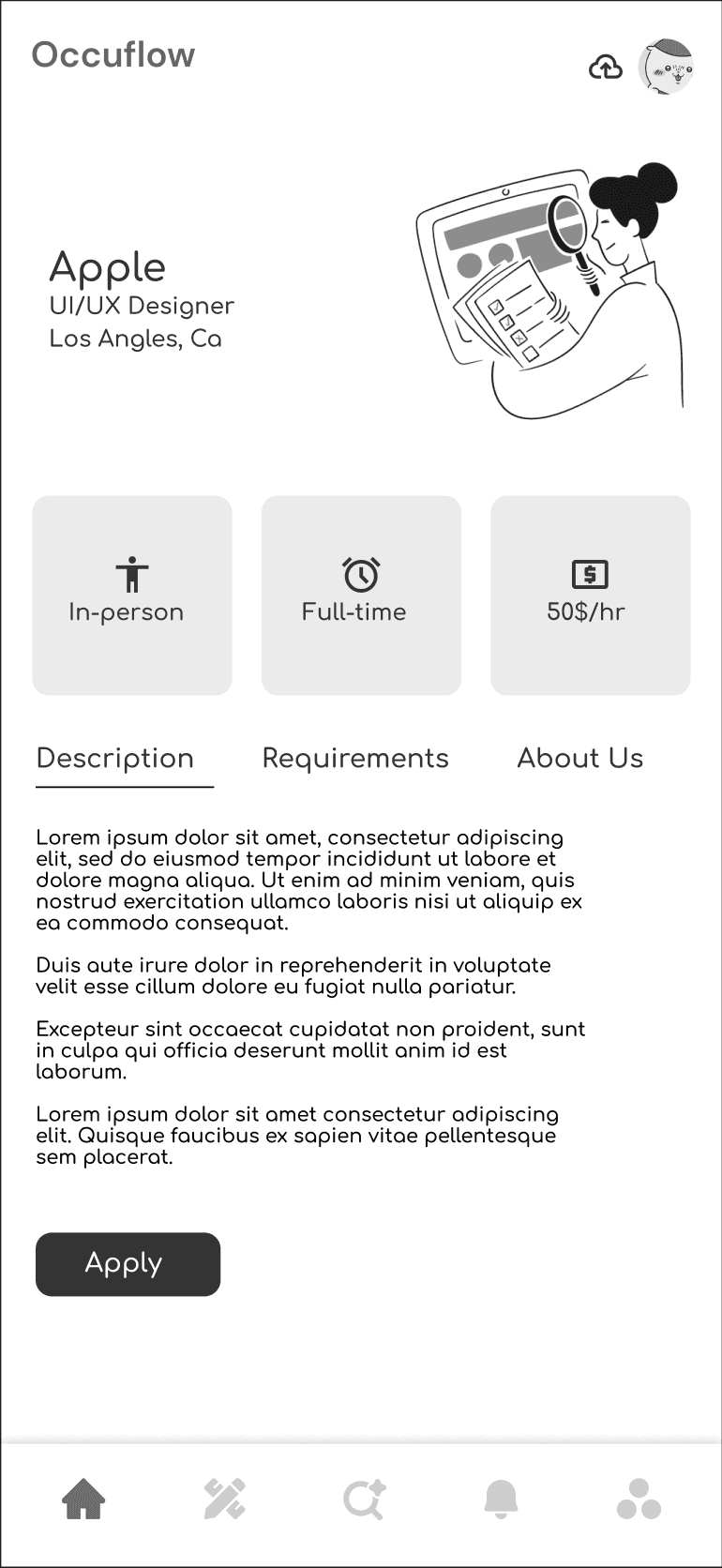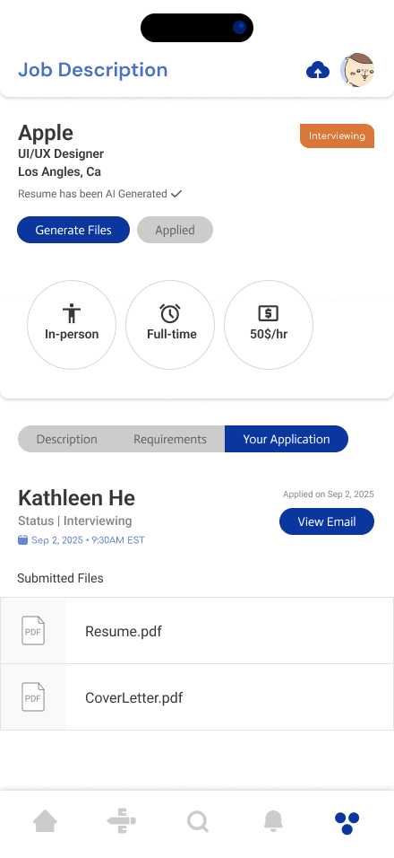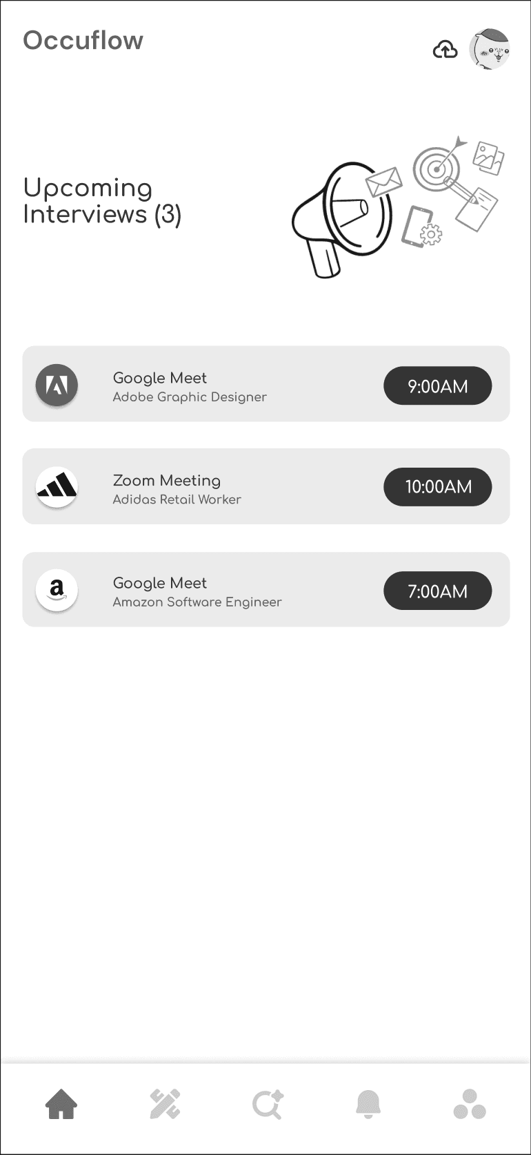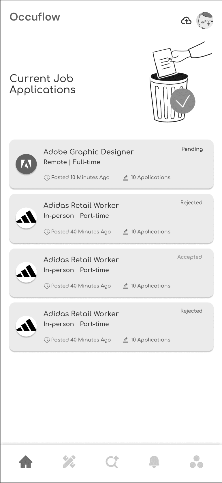 Occuflow is an app that allows users to stand out in their job application by customizing their resume and preparing with company specific questions with the use of AI. The app also helps with notifications for said applications, which will then be connected to the applications to alert the user.