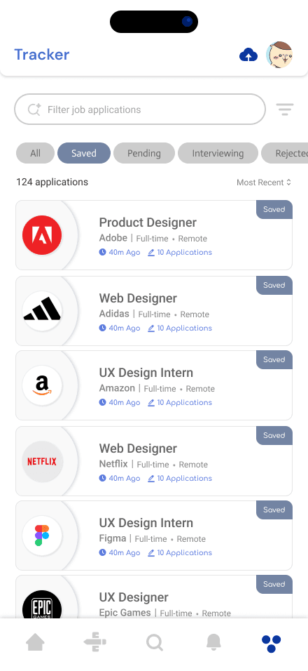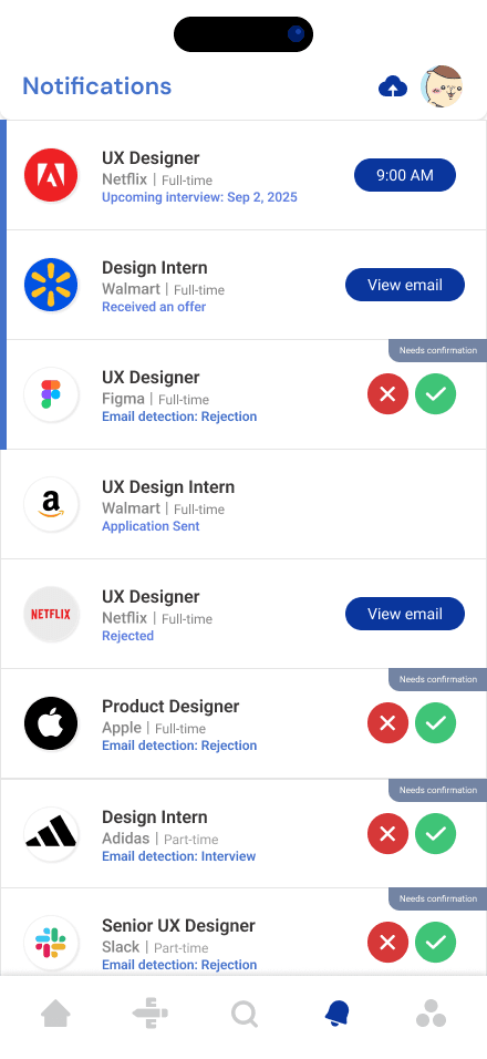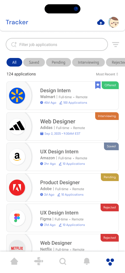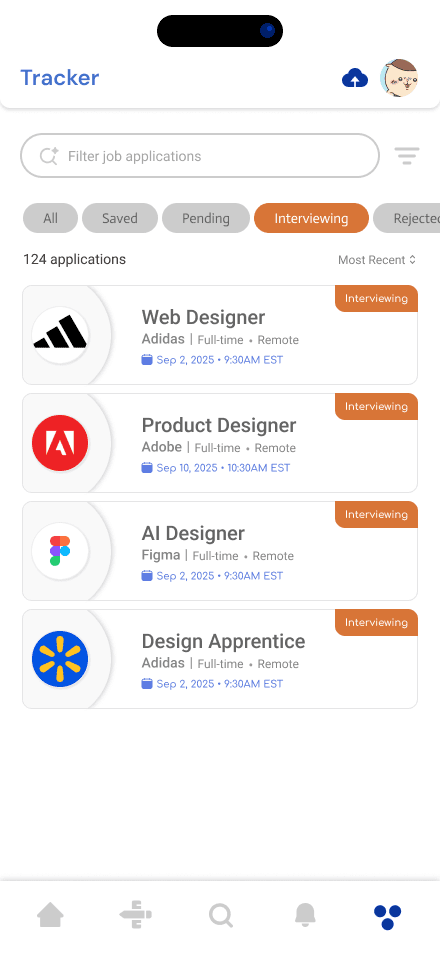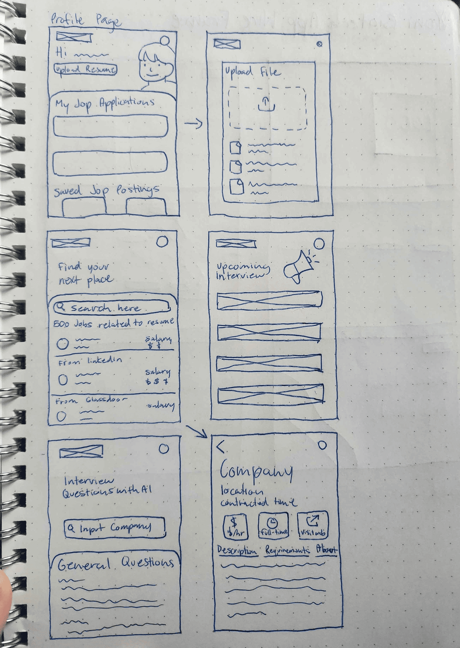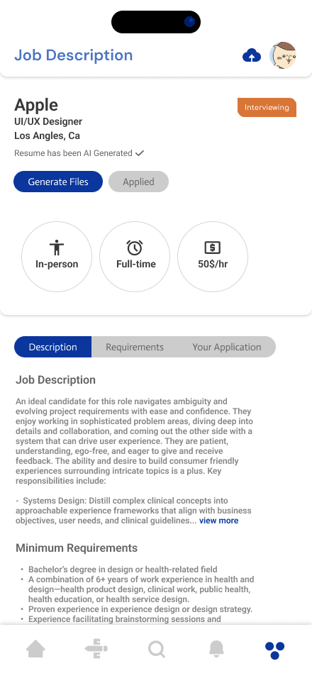 an app created to help with the job searching process. In this app, the main features included the use of AI to help give suggestions for your portfolio and to help with interview preparation. Some other features I decided to include were application organization, status, etc. (Illustrations from streamlinehq.com)